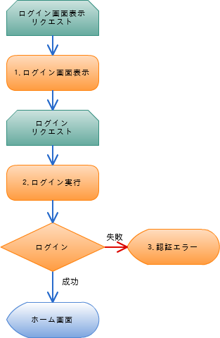 一般ユーザがログインする場合は、「ログイン画面」にアクセスし、ログインを実行します。一般ユーザのログイン処理におけるリクエストフローは、以下の通りです。このフローにおける処理の詳細は、「 一般ユーザのログイン処理フロー 」を参照してください。