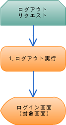 一般ユーザ、および、システム管理者が、ログアウトURLにアクセスし、ログアウトを実行します。ログアウト実行時のリクエストフローは、以下の通りです。
