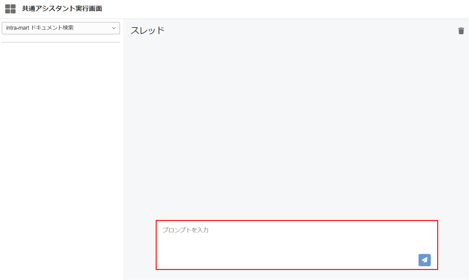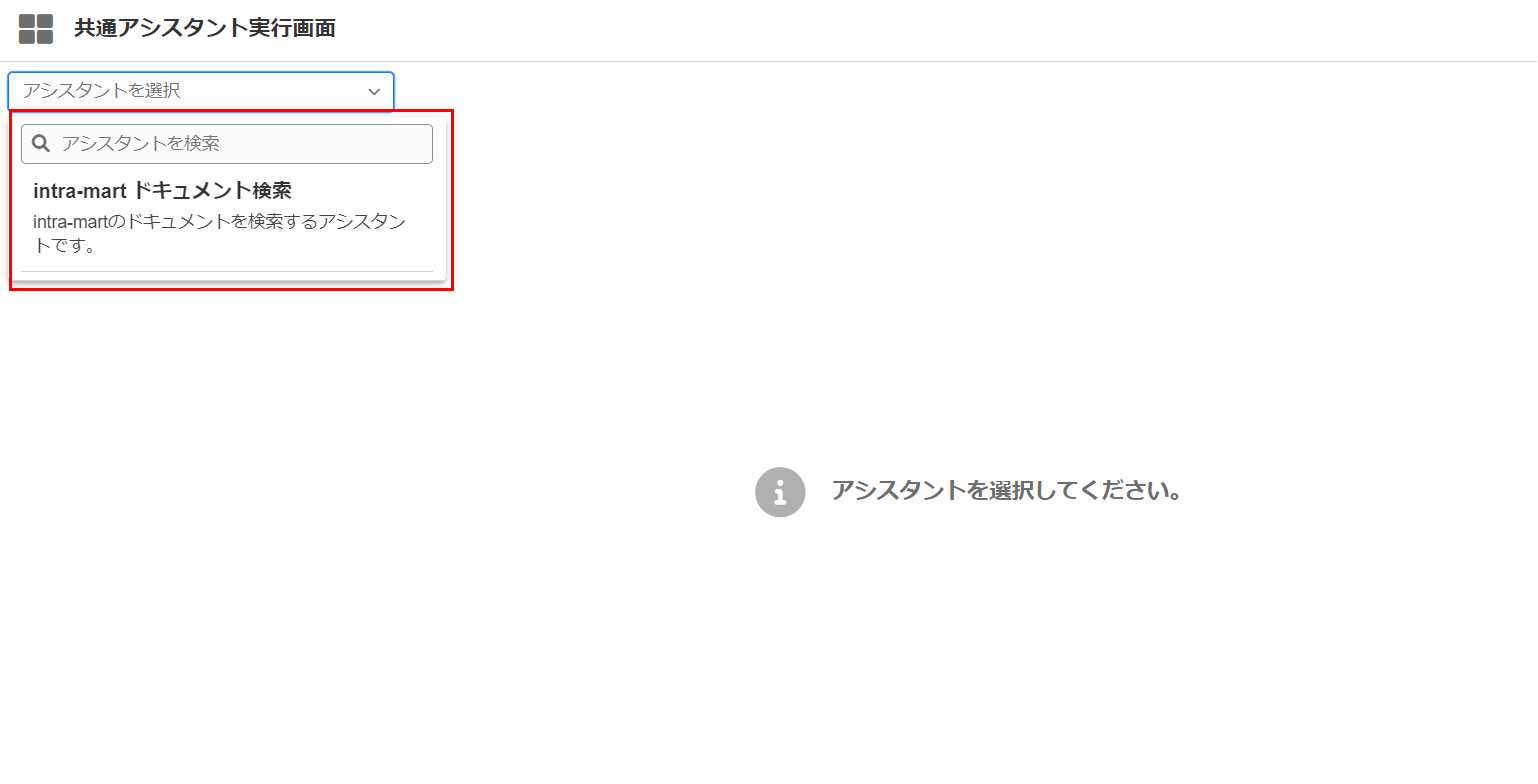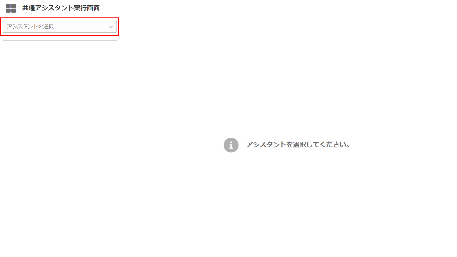 共通アシスタント実行画面は生成AIアシスタントの実行を行うための共通画面です。