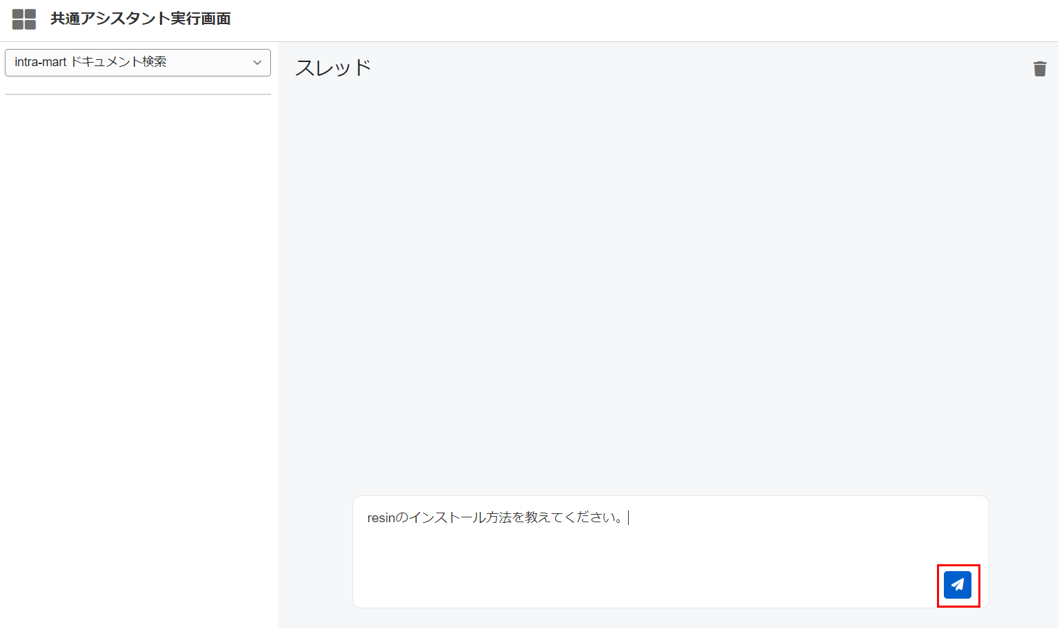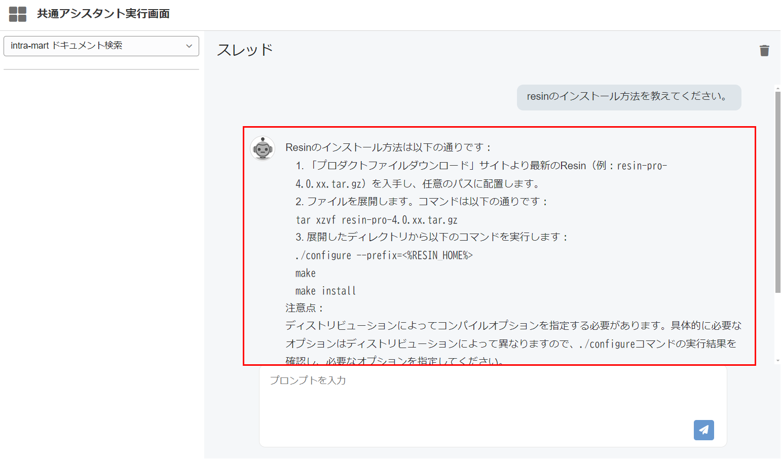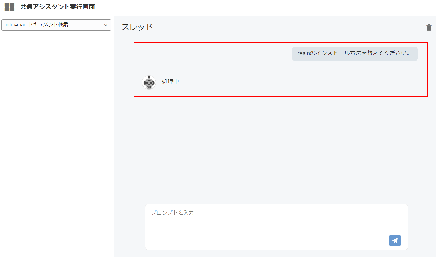 共通アシスタント実行画面は生成AIアシスタントの実行を行うための共通画面です。