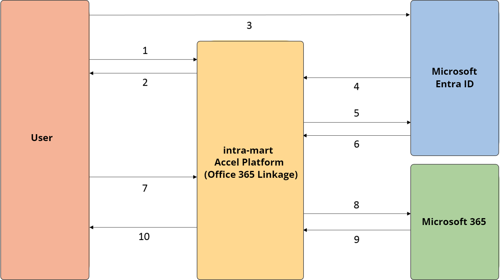 intra-mart Accel Platform (Office 365 連携API) は、Microsoft Entra ID に認可コードを提示し、アクセストークンを要求します。