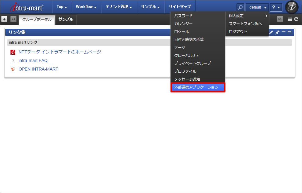 任意のユーザで intra-mart Accel Platform にログインしてください。