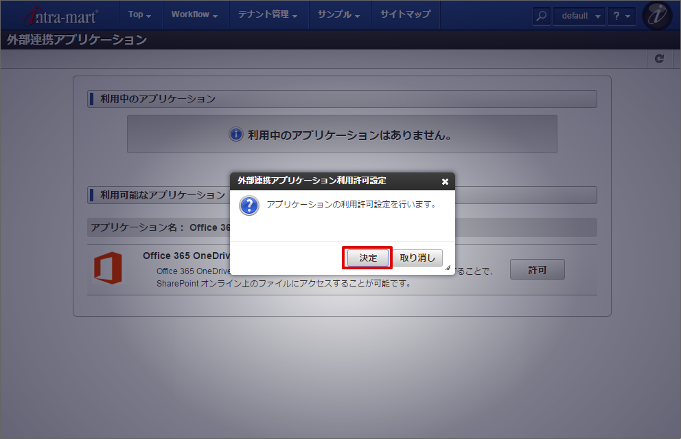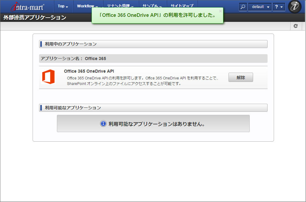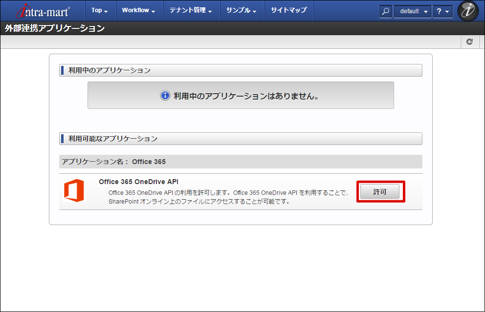 「Office 365 OneDrive API」 の「許可」をクリックします。