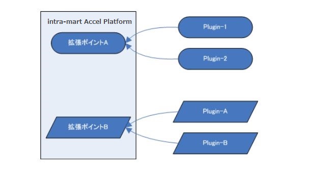 各拡張ポイントに対して作成されたプラグインを読み込む仕組みです。1つの拡張ポイントに対して、複数のプラグインを設定できます。各プラグインは PluginManager から拡張ポイントを指定して取得することが可能です。また、拡張ポイントとプラグイン ID(プラグインの識別 ID)を指定して、取得することも可能です。