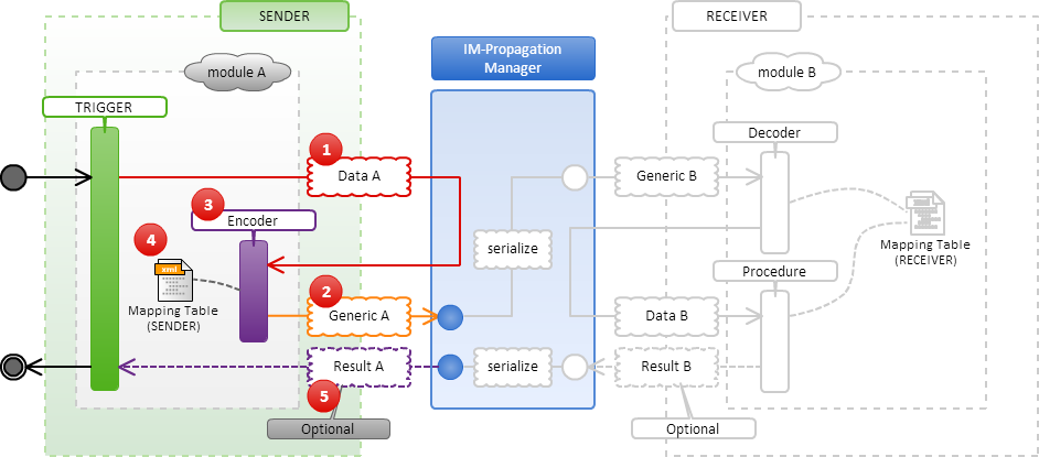 本書で解説している IM-Propagation の説明は、バージョン 8.0.6 時点の動作に基づいて記載されています。必要に応じて、 8.0.6 以上のバージョンを指定することができます。データ受信側のモジュールが、データ送信側のモジュールに依存する必要はありません。