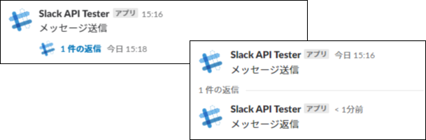 タスクが実行されると指定したスレッドへ返信メッセージが送信されます。