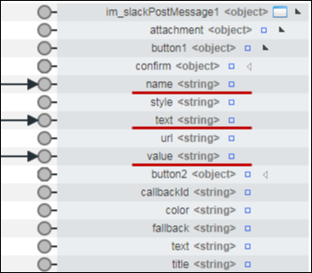 interactive message button付きのメッセージを投稿する場合は、 「attachment - button1 - text」にボタンに表示するテキストを、 「attachment - button1 - name」にボタンをクリックした際に送信されるパラメータの名前を、 「attachment - button1 - value」にボタンをクリックした際に送信されるパラメータの値を設定してタスクを実行します。