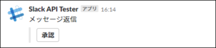 例えば、 text に 「承認 」、name に 「action 」、value に 「approve 」と指定してタスクを実行すると以下のようにメッセージが投稿されます。