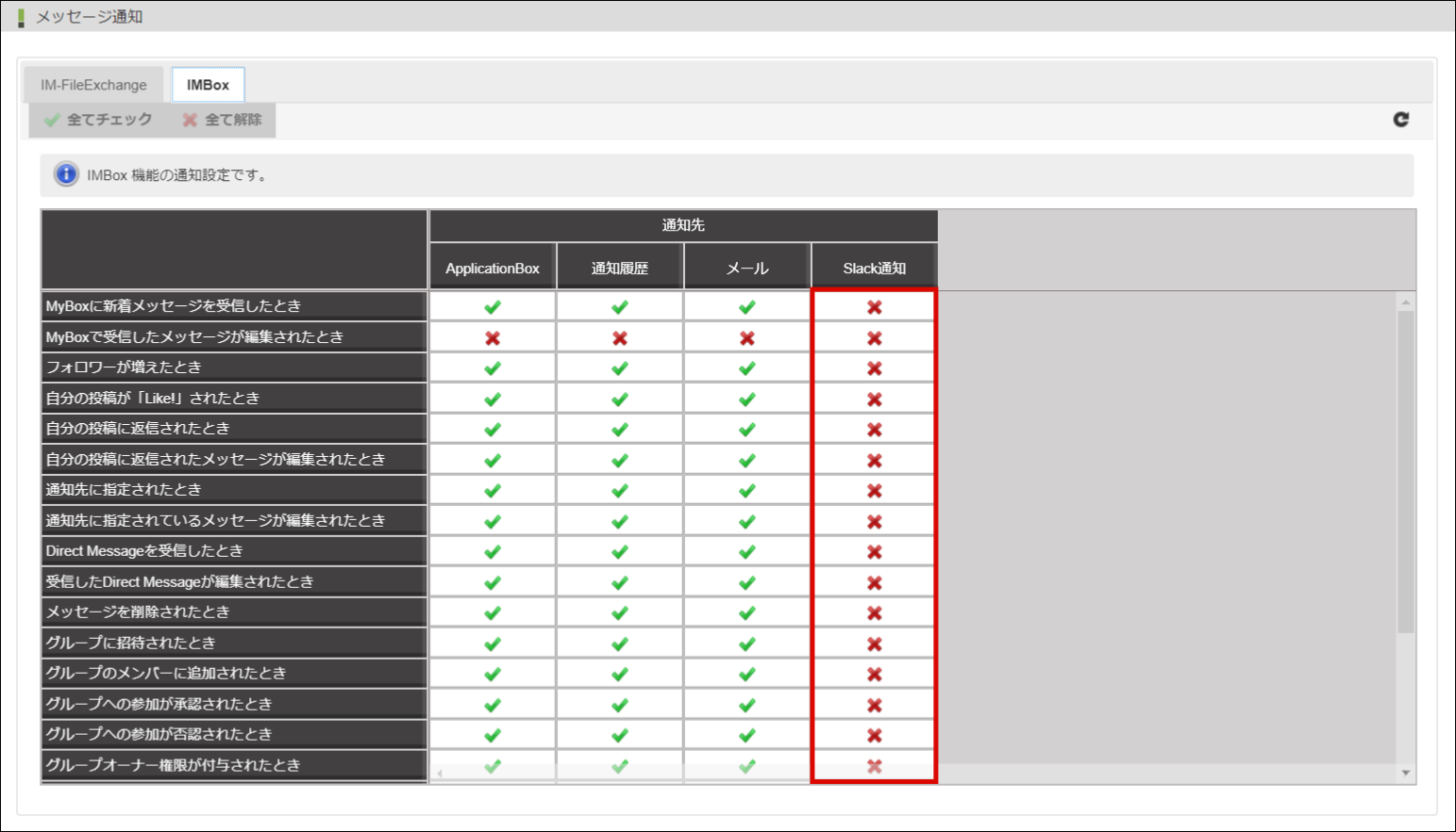 通知設定を行ってもSlack用のメッセージテンプレートが用意されていないアプリケーションのメッセージは通知されません。