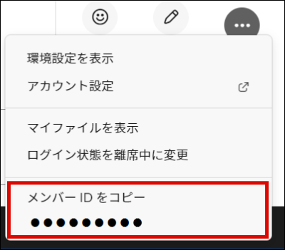 Slack ワークスペースのプロフィールから「その他」 - 「メンバーIDをコピー」をクリックします。