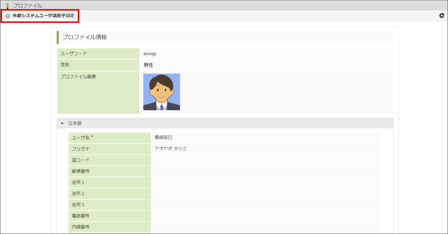 ツールバーの「外部システムユーザ識別子設定」をクリックします。