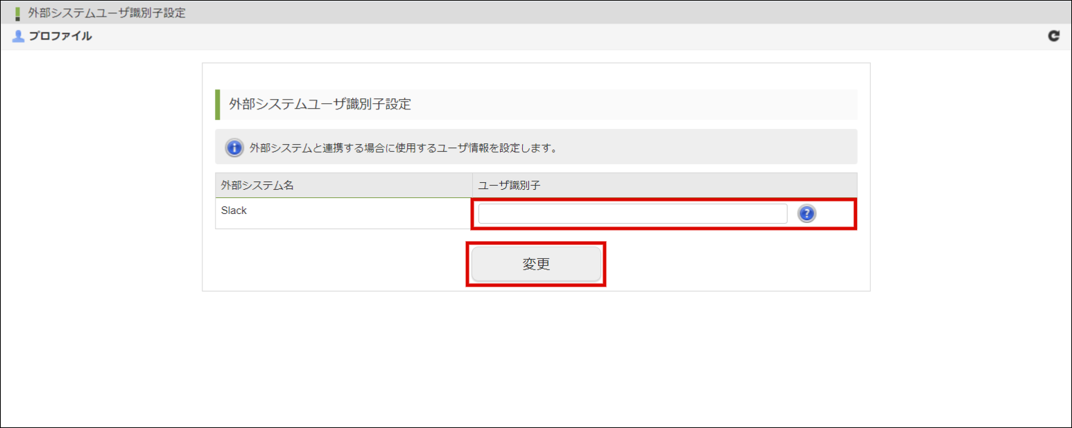 「ユーザ識別子」にコピーしたメンバーIDを貼り付けて「変更」ボタンをクリックします。