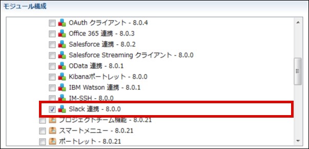 [追加機能 - 外部システム連携機能 - Slack 連携]モジュールを選択します。