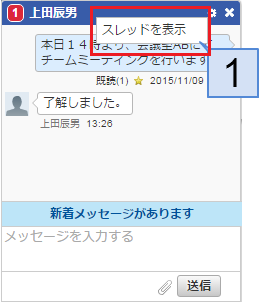 新着通知 新着メッセージの受信をお知らせします。新着メッセージを受信した場合に表示されます。クリックすると新着メッセージが表示されます。