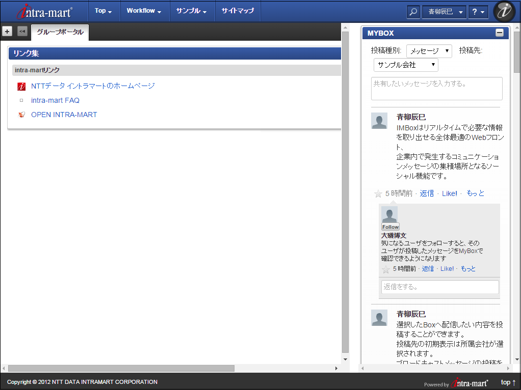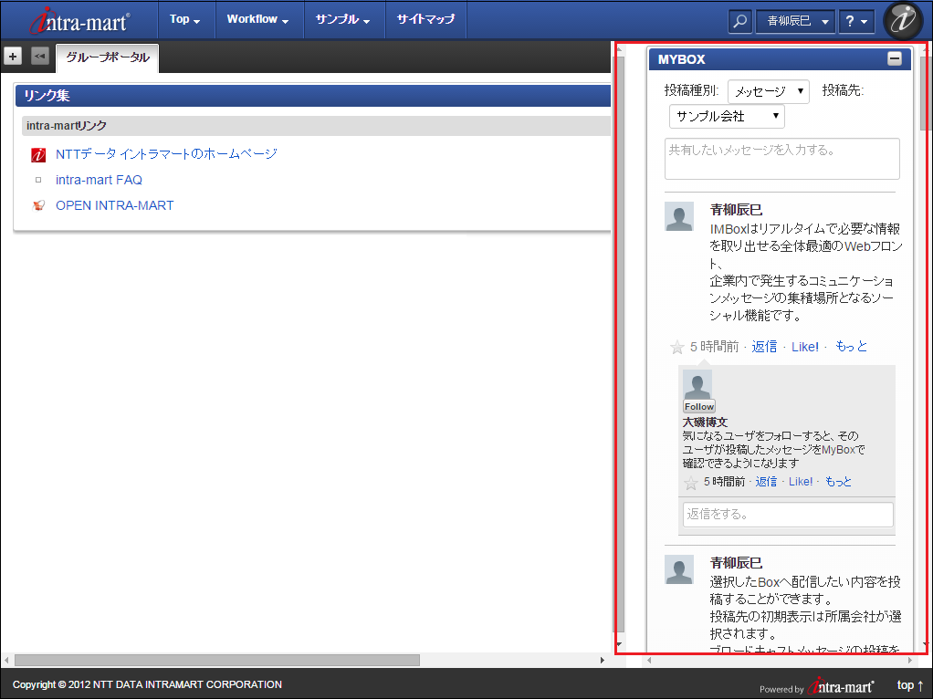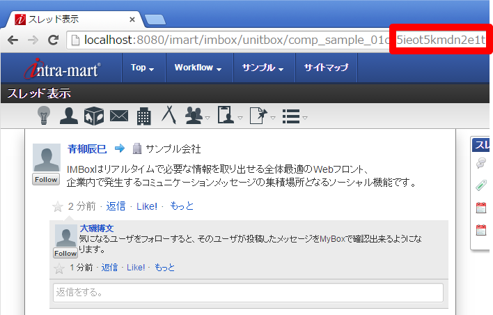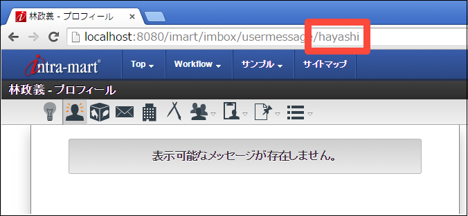 IMBox そのもの、intra-mart Accel Collaboration のワークスペースの画面など、IMBox が表示されている画面を url に指定すると、新着通知が正常に届かない場合があります。