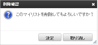 選択したマイリストが削除されます。 マイリストを削除することで、フォローしているユーザがフォロー解除されることはありません。 【決定】ボタンをクリックしてください。