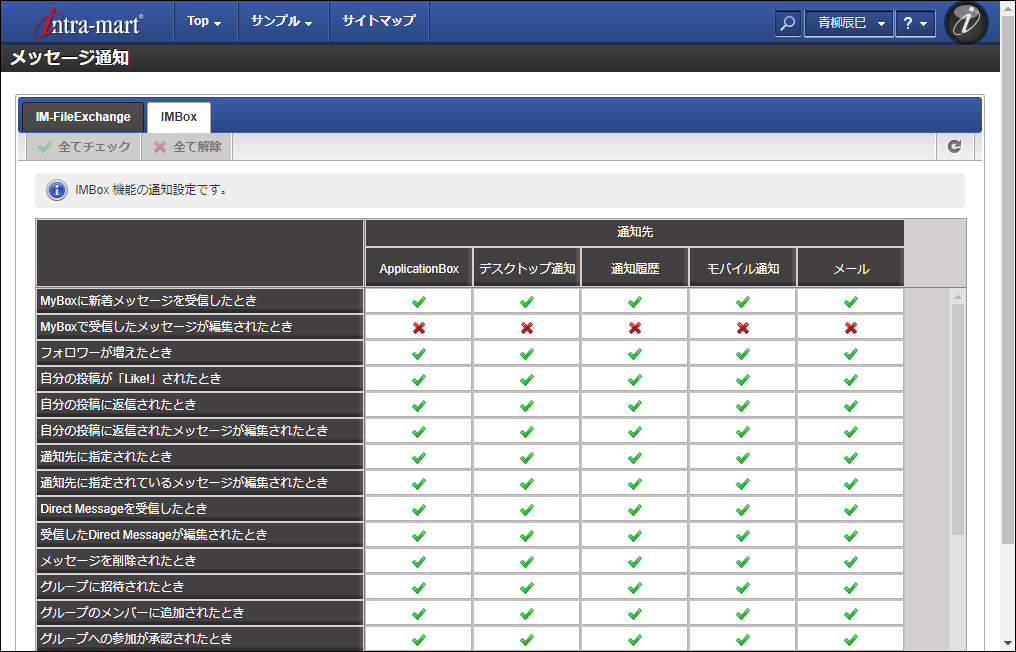 IMBox内で行われるアクションを、メールを利用して通知することをメール通知と称します。