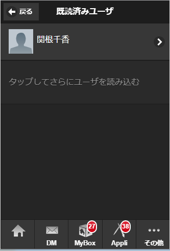 宛先をタップすることで「Direct Message送信ユーザ」に遷移します。既読をタップすることで「既読済みユーザ」に遷移します。注意