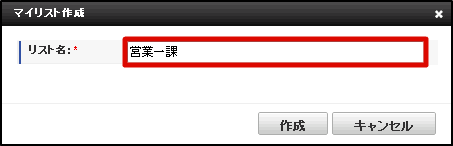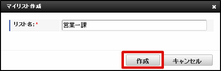 IMBox メニューの「Mylist」から、「マイリスト作成」をクリックします。 リスト名を入力します。 「作成」をクリックします。 IMBox メニューの「Mylist」に、作成したリストが表示されました。
