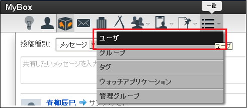 IMBox メニューの「一覧」から、「ユーザ」をクリックします。
