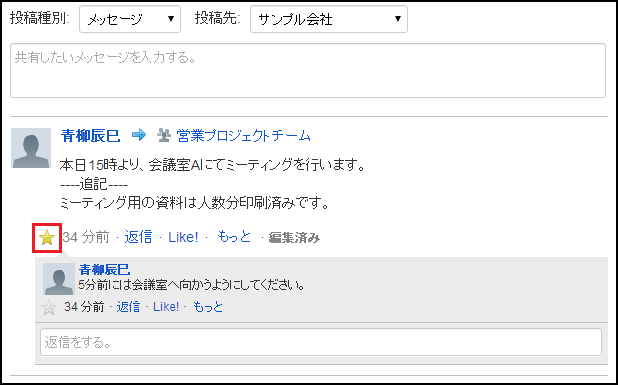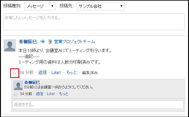 メッセージのBookmarkアイコンをクリックします。