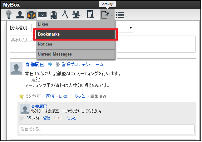 メッセージをBookmark登録すると、そのメッセージをBookmarksで確認できます。
