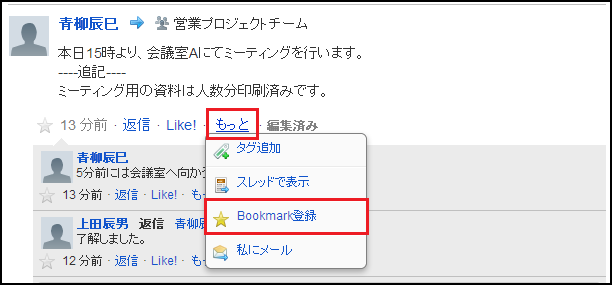 「もっと」メニューからBookmark登録することも可能です。