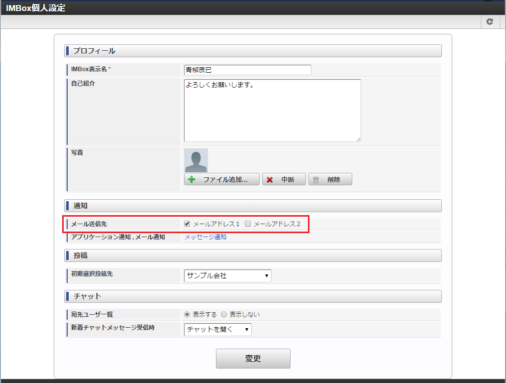 個人設定のメール送信先にチェックされているメールアドレスにメールが送信されます。