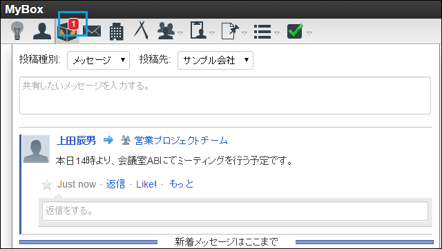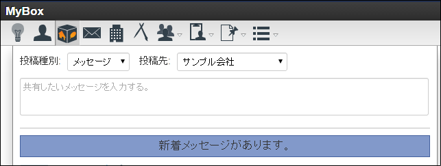 未読状態のメッセージがないため、IMBox メニューの「MyBox」アイコンに未読件数が表示されていないことが確認できます。