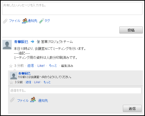 編集中にShift + Enterキーを同時にクリックすることで、「編集終了」ボタンをクリックしなくても編集することが可能です。編集機能の詳細については「IMBox仕様書 - Box共通仕様」、および、「IMBox仕様書 - Box共通仕様 - アクション」を参考にしてください。