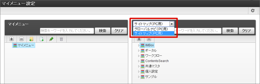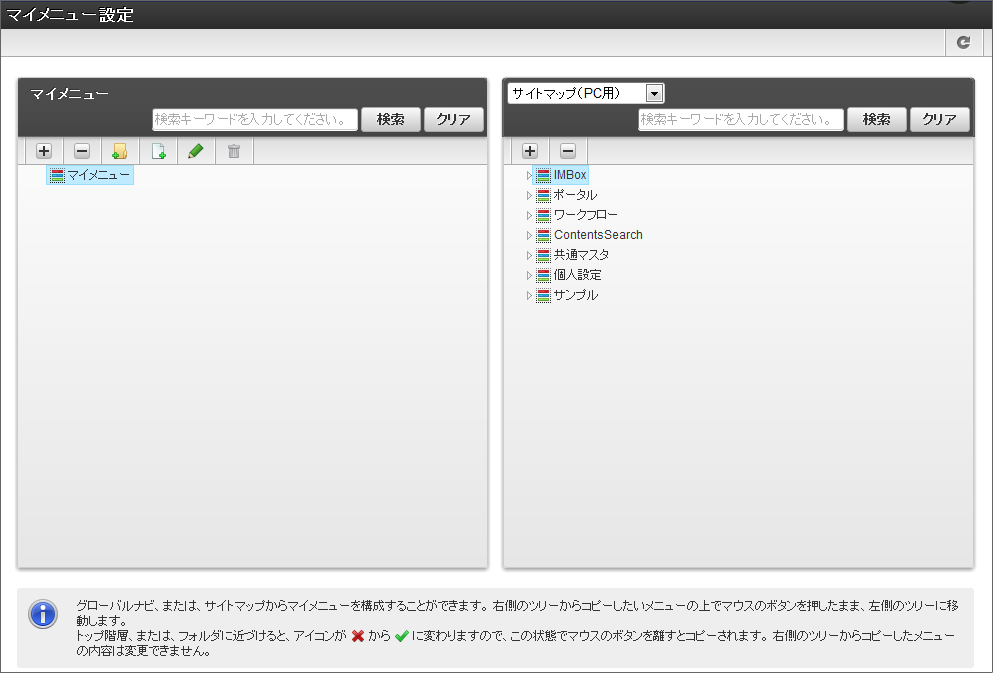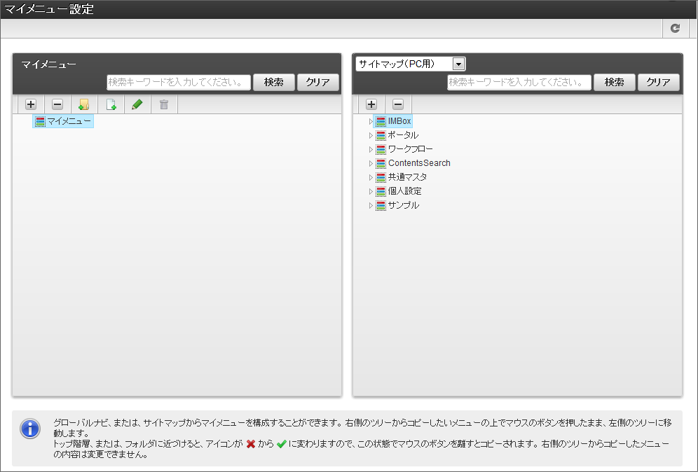 この手順では「マイメニュー」について説明します。「マイメニュー」は以下の単位でメニュー構成を管理します。