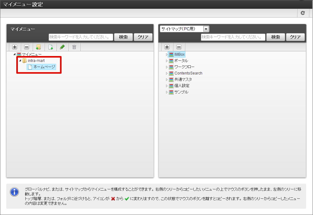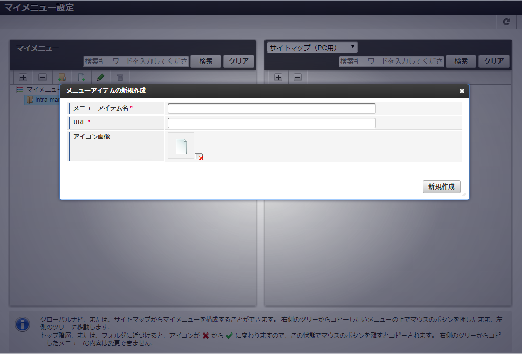 マイメニューにフォルダとアイテムを作成する¶
