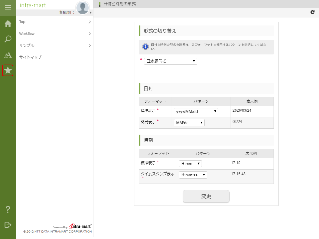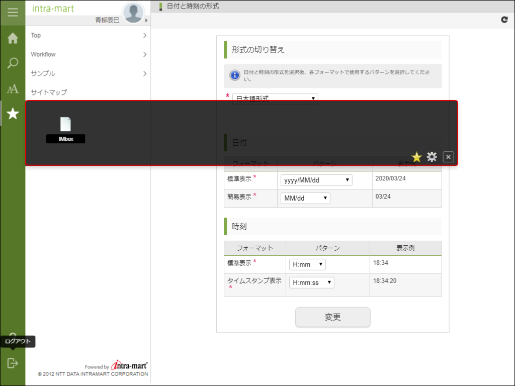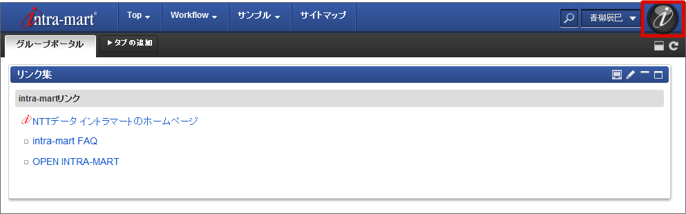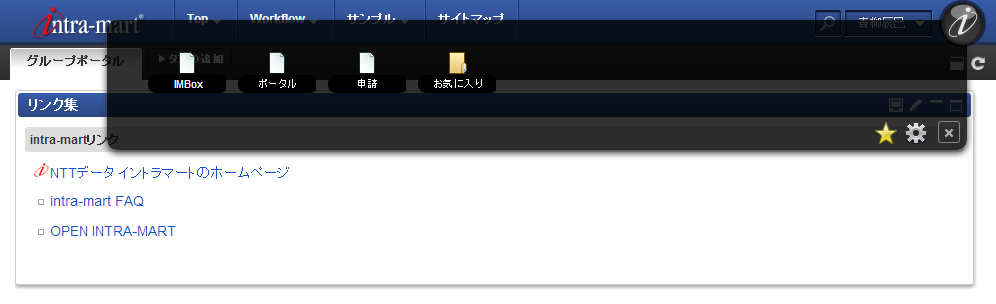 一般ユーザが普段よく使うであろうメニューを画面上部に登録する機能です。画面上部のメニューエリアに表示され、目的のページに素早くアクセスです。また、認可を設定することで公開範囲を制限できます。