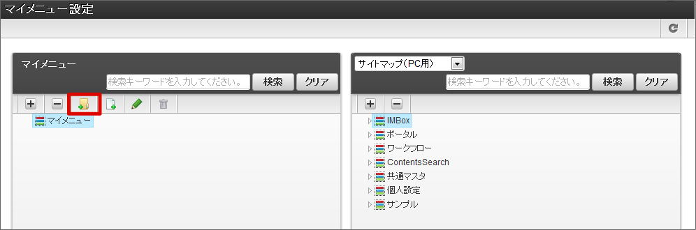 「メニューフォルダの新規作成」アイコンをクリックします。