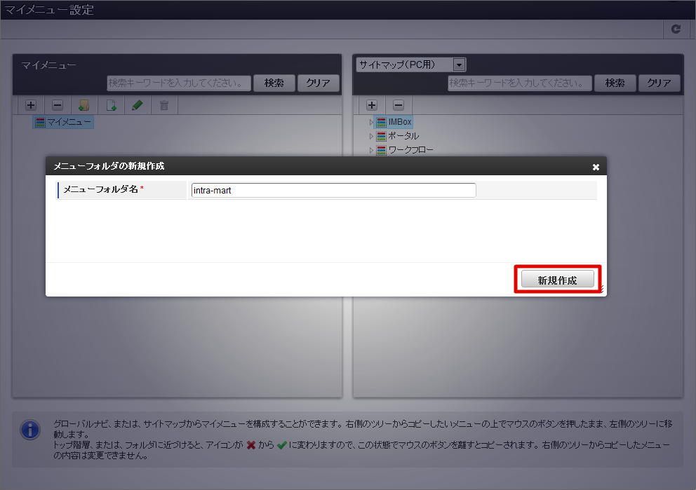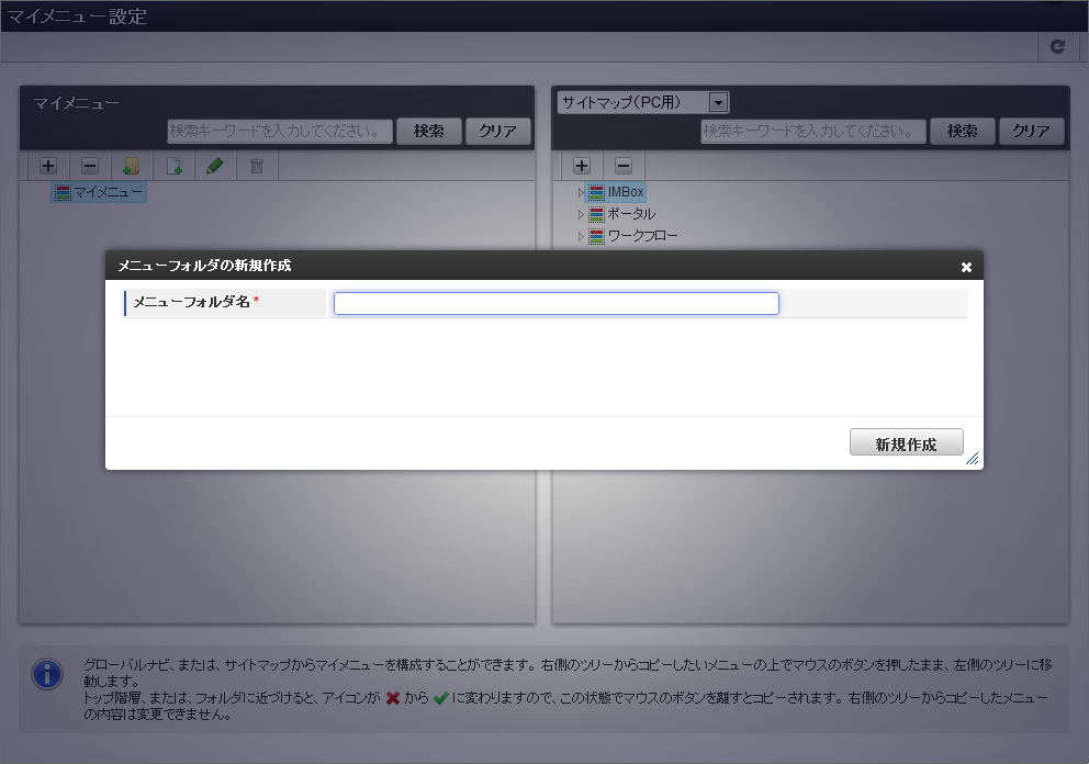 「メニューフォルダの新規作成」画面が表示されます。