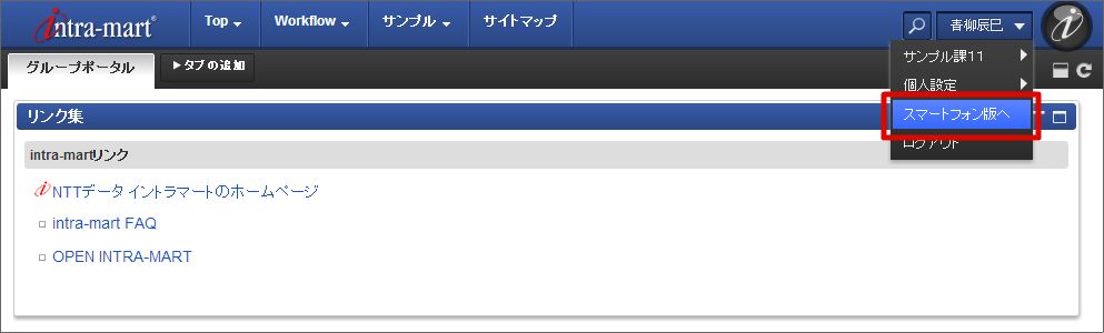 「スマートフォン版」では IMBox やWorkflow等を使用できます。