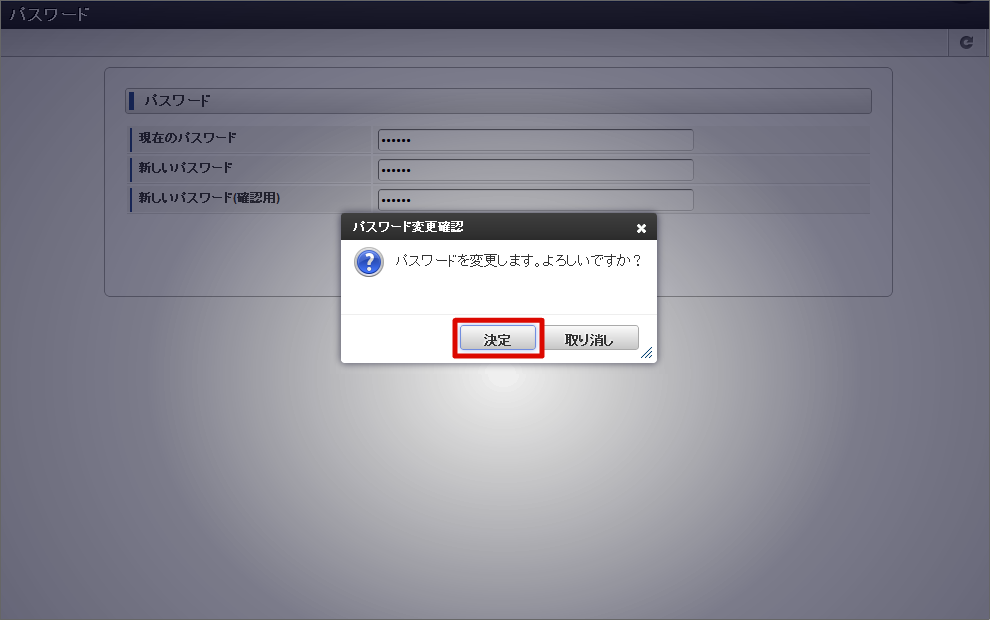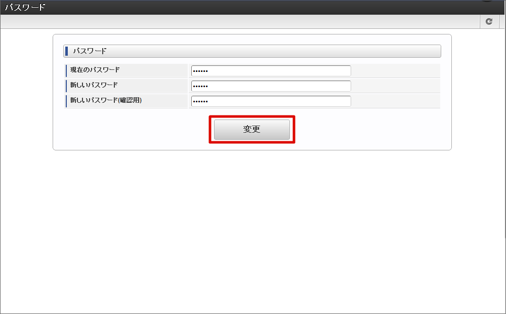 「サイトマップ」→「個人設定」→「パスワード」の順にクリックします。 「パスワード」画面が表示されます。 パスワードを入力し、「変更」をクリックします。 「決定」をクリックします。 「パスワードを変更しました。」と表示されます。