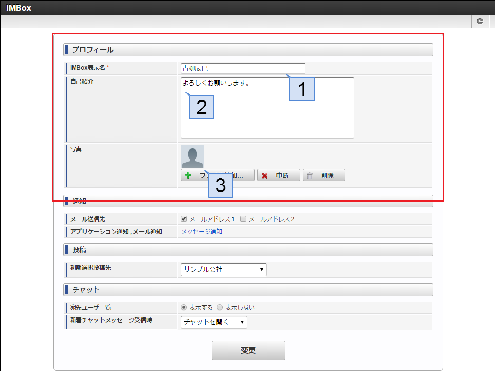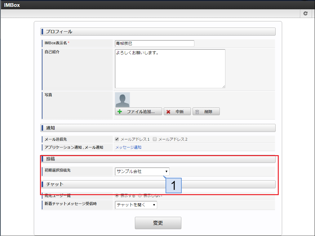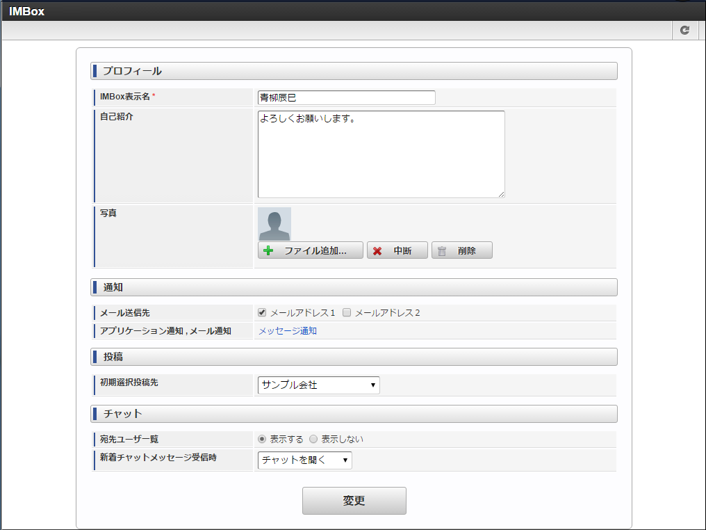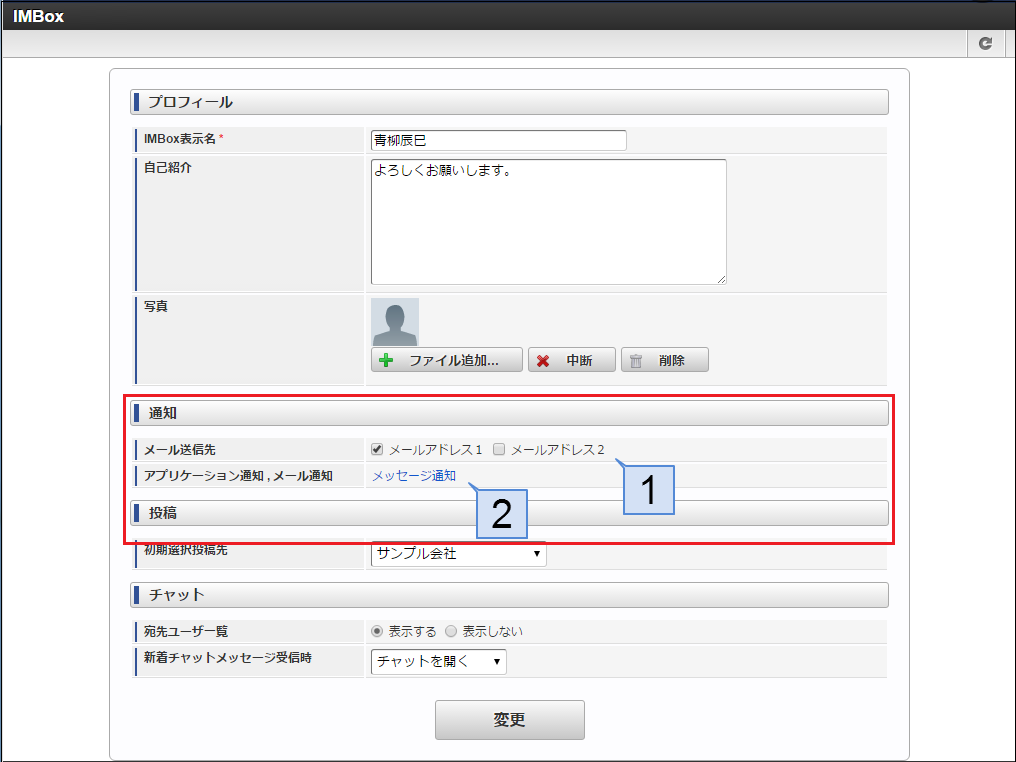 IMBoxの個人設定についての操作方法は、「 IMBox ユーザ操作ガイド 」-「 個人設定を編集する 」を参照してください。