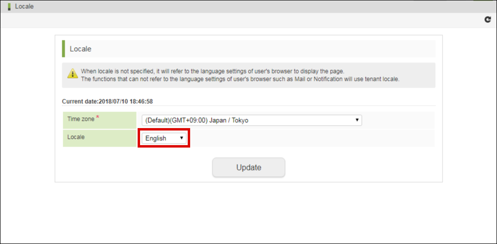 intra-mart Accel Platform 2018 Summer(Tiffany) で、個人設定でロケールを指定しない場合の「ロケール」に関するセレクトボックスに表示される項目名を変更しました。