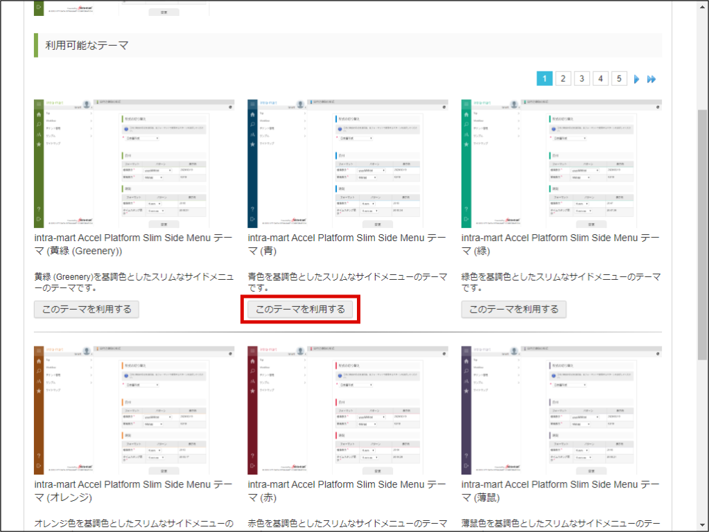 利用したいテーマの「このテーマを利用する」をクリックします。