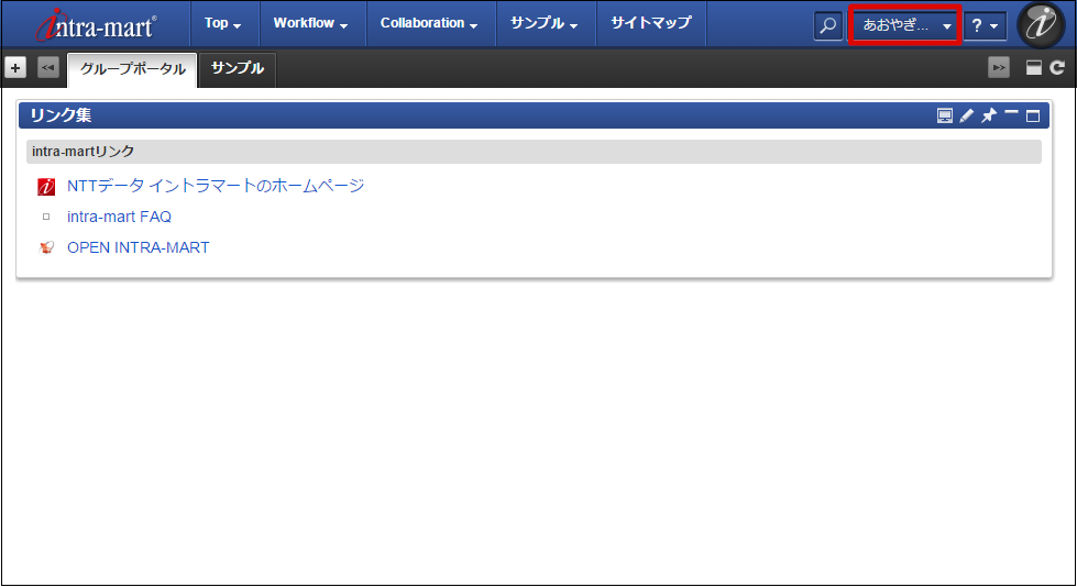ユーザ名が長い場合、グローバルナビと重なって表示される場合があります。その場合は、グローバルナビの最大表示数を調整したりユーザ名表示エリアの最大幅を設定したりして回避してください。