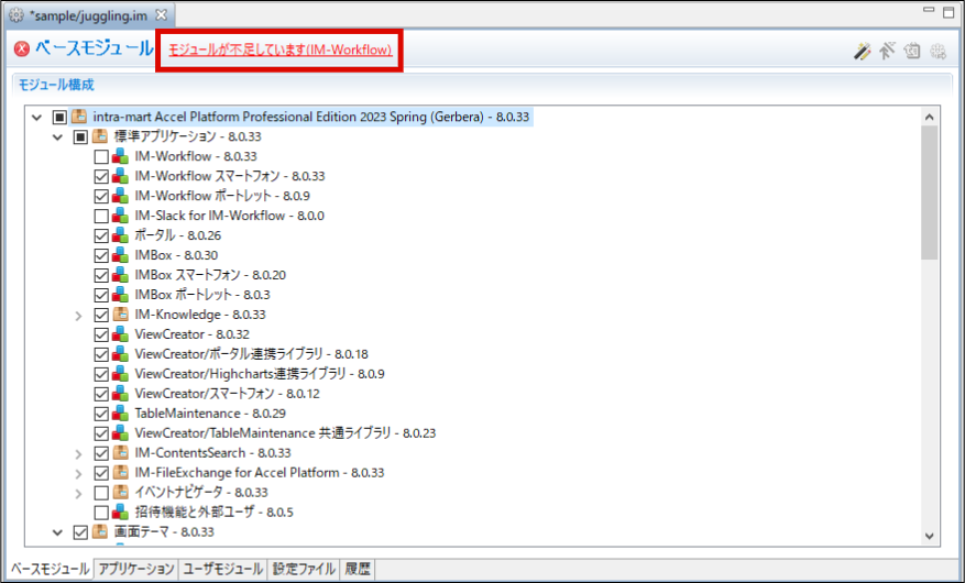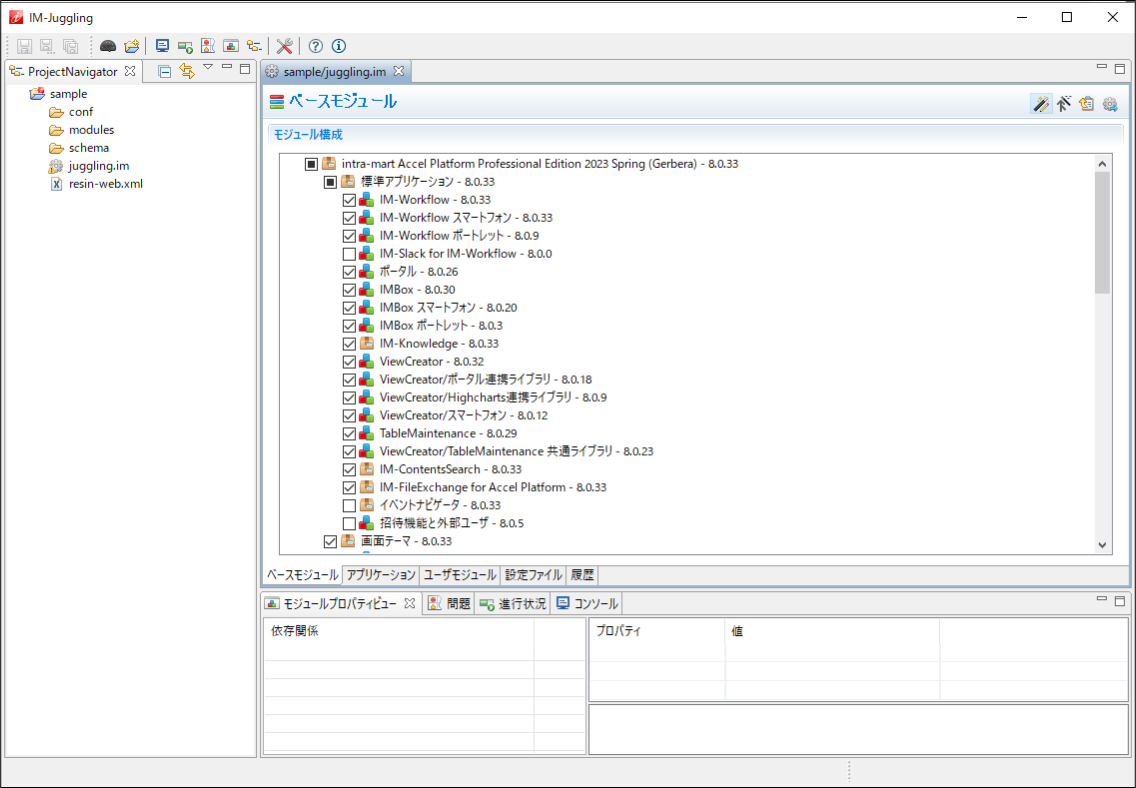 IM-Juggling はモジュールの管理、WARファイルを出力できる環境構築ツールです。このツールを使用し、新しい機能の導入や不具合修正の適用をします。