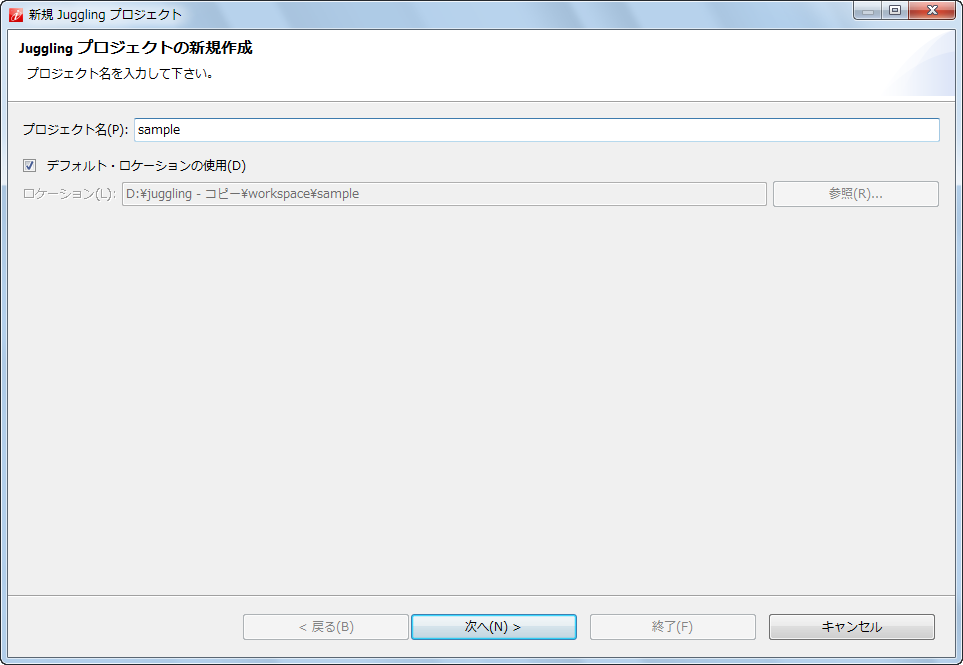 展開したディレクトリ直下にある、 juggling.exe を起動します。