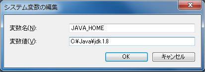 Windows環境変数に JDK をインストールしたホームディレクトリを追加します。WindowsOSのマニュアルにしたがい、以下を設定します。