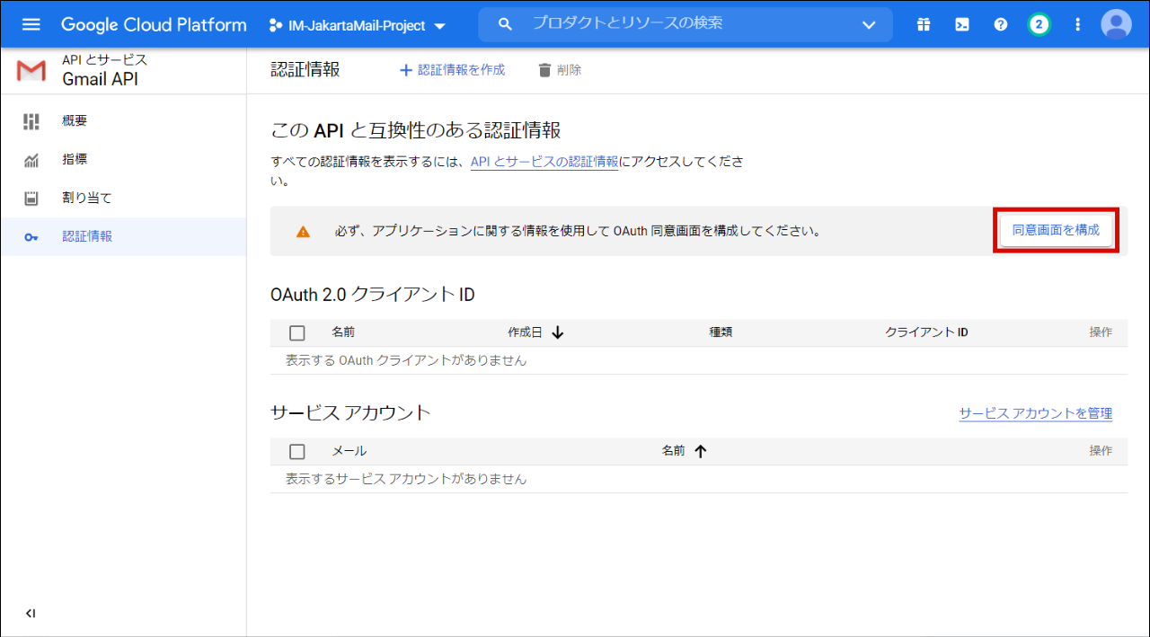 「同意画面を構成」をクリックします。