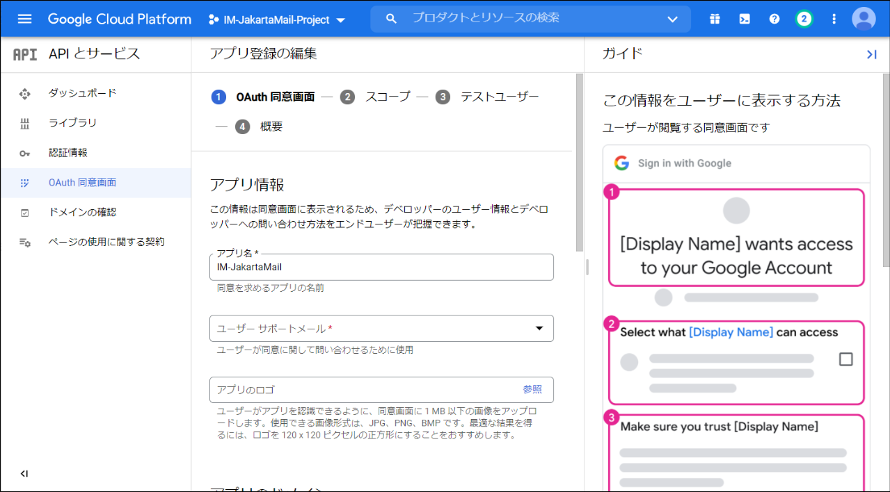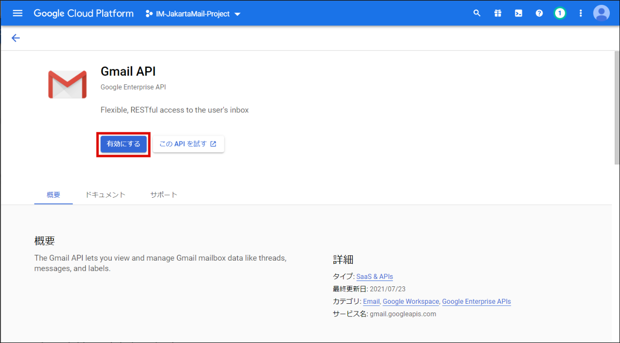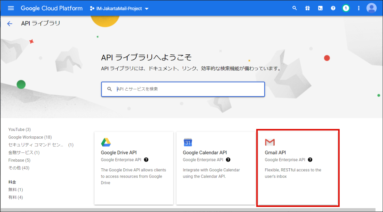 Gmail API を利用する場合Gmail API を利用する場合は設定ファイルの以下の部分のコメントアウトを外し、各項目の設定を行って保存します。<oauth-provider id="Please_input_your_ID"> <provider-type>extra</provider-type> <name message-cd="CAP.Z.IWP.OAUTHCLIENT.GMAIL.XOAUTH.NAME">Gmail API</name> <description message-cd="CAP.Z.IWP.OAUTHCLIENT.GMAIL.XOAUTH.DESCRIPTION">It is allow the use of the Gmail API.</description> <icon-path>im_oauth_client/images/gmail.png</icon-path> <oauth-config> <authz-end-point>https://accounts.google.com/o/oauth2/auth</authz-end-point> <token-end-point>https://oauth2.googleapis.com/token</token-end-point> <client-id>[Please input your application's Client ID]</client-id> <client-secret>[Please input your application's Client Secret]</client-secret> <scope>https://mail.google.com/</scope> </oauth-config> <extra-config> <parameter name="access_type">offline</parameter> </extra-config> </oauth-provider>