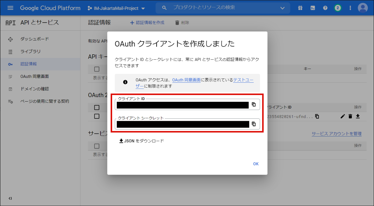 以上で認証情報の作成が完了です。