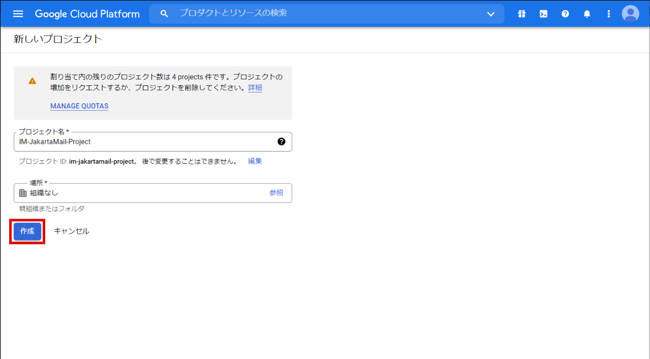 サイドメニューから「IAM と管理」 - 「プロジェクトを作成」をクリックします。