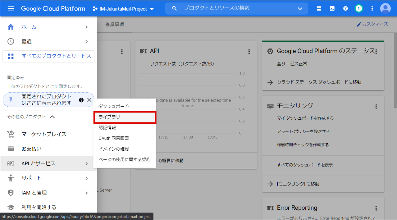 以下のURLから Google Cloud Platform の管理コンソールに Google Cloud Platform 管理者ユーザ でサインインします。