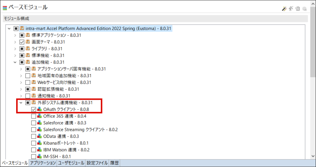 IM-Juggling プロジェクトの「追加機能」 - 「外部システム連携機能」 - 「 OAuth クライアント 」モジュールを選択します。